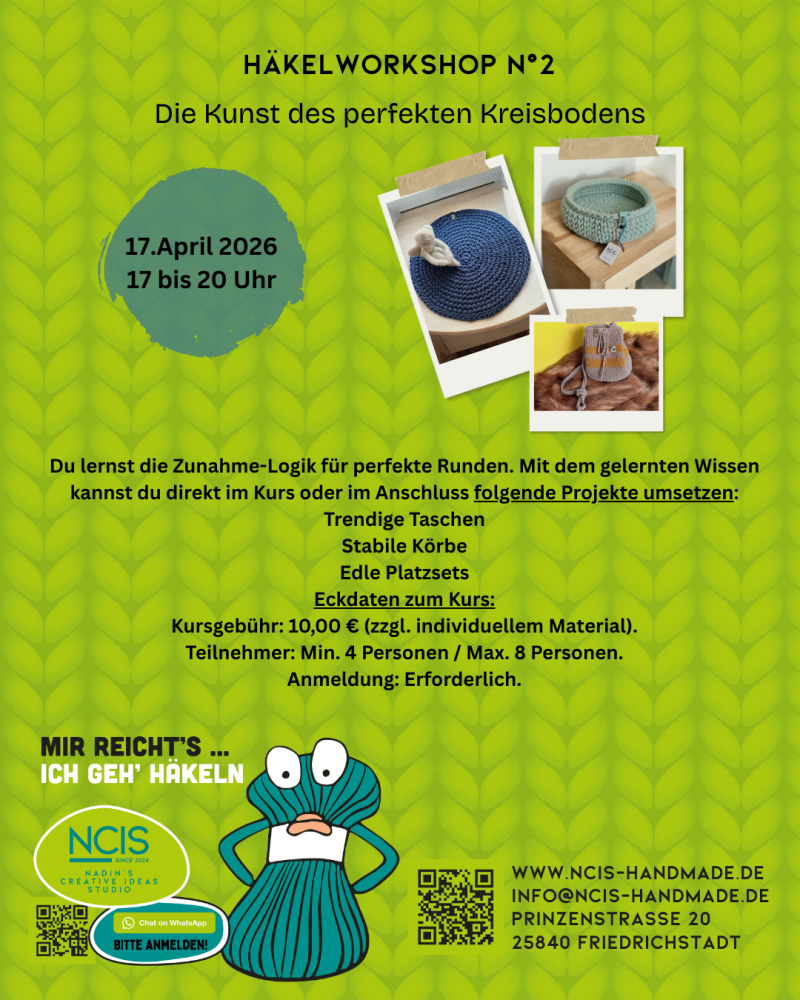 Willkommen im Mitmach-Studio von NCIS Handmade in Friedrichstadt. Hier erfährst Du mehr über meine handgefertigten Körbe und Wohnaccessoires aus Bobbiny Garnen oder Reiner Schurwolle vom Inselschaf Föhr oder vom Deichschaf aus Reußenköge (Nordfriesland).
